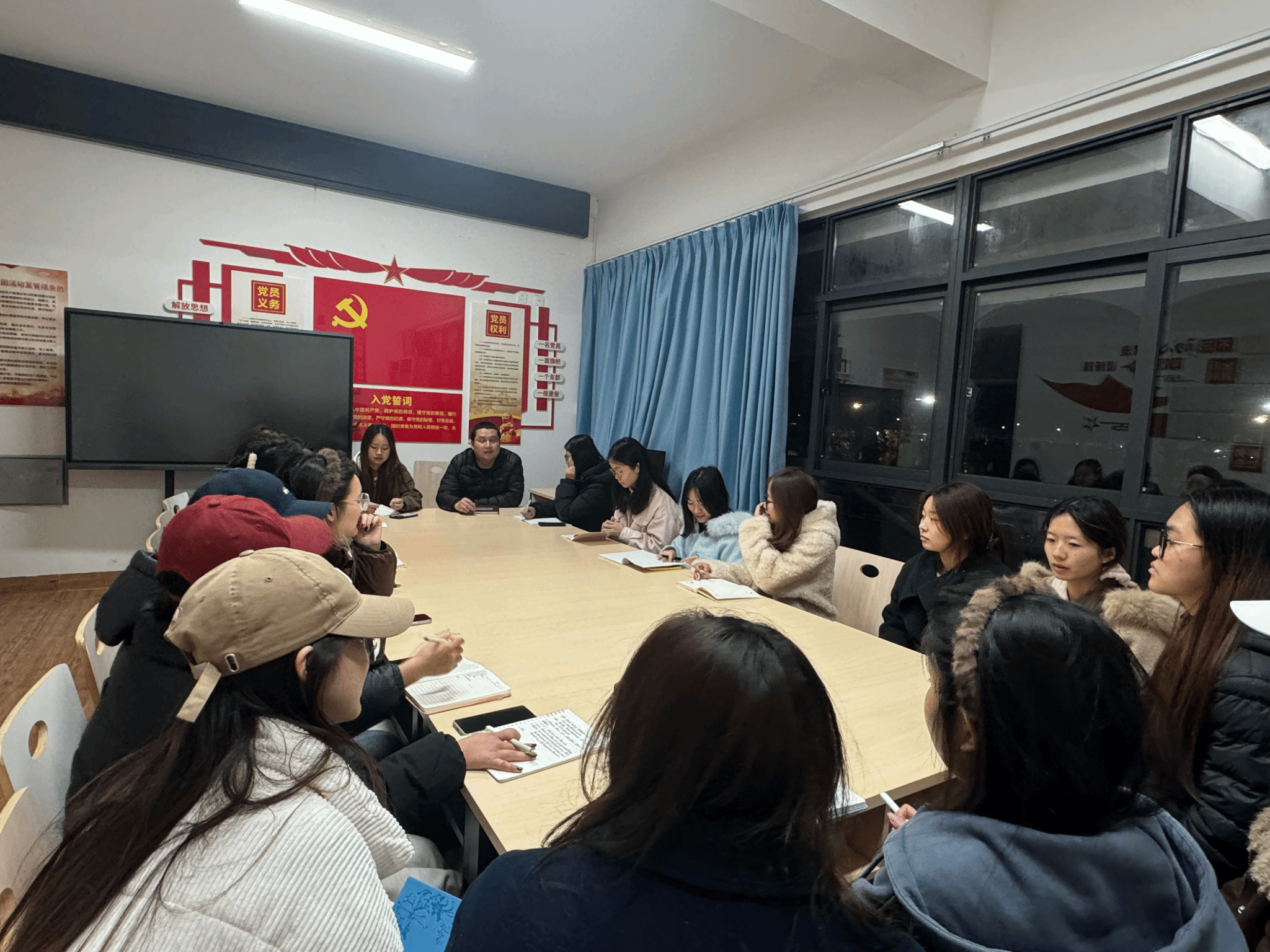 2026年3月14日21:00,我院于培伦苑20—1B党建活动室组织学生党员、团委学生会主要干部召开专题学习会,学习中央关于树立和践行正确政绩观主题教育的相关精神。会议由学院学生党支部书记、团委书记曾乾辉主持。会议还围绕学生组织党建引领、思想建设与工作提升展开深入讨论。
