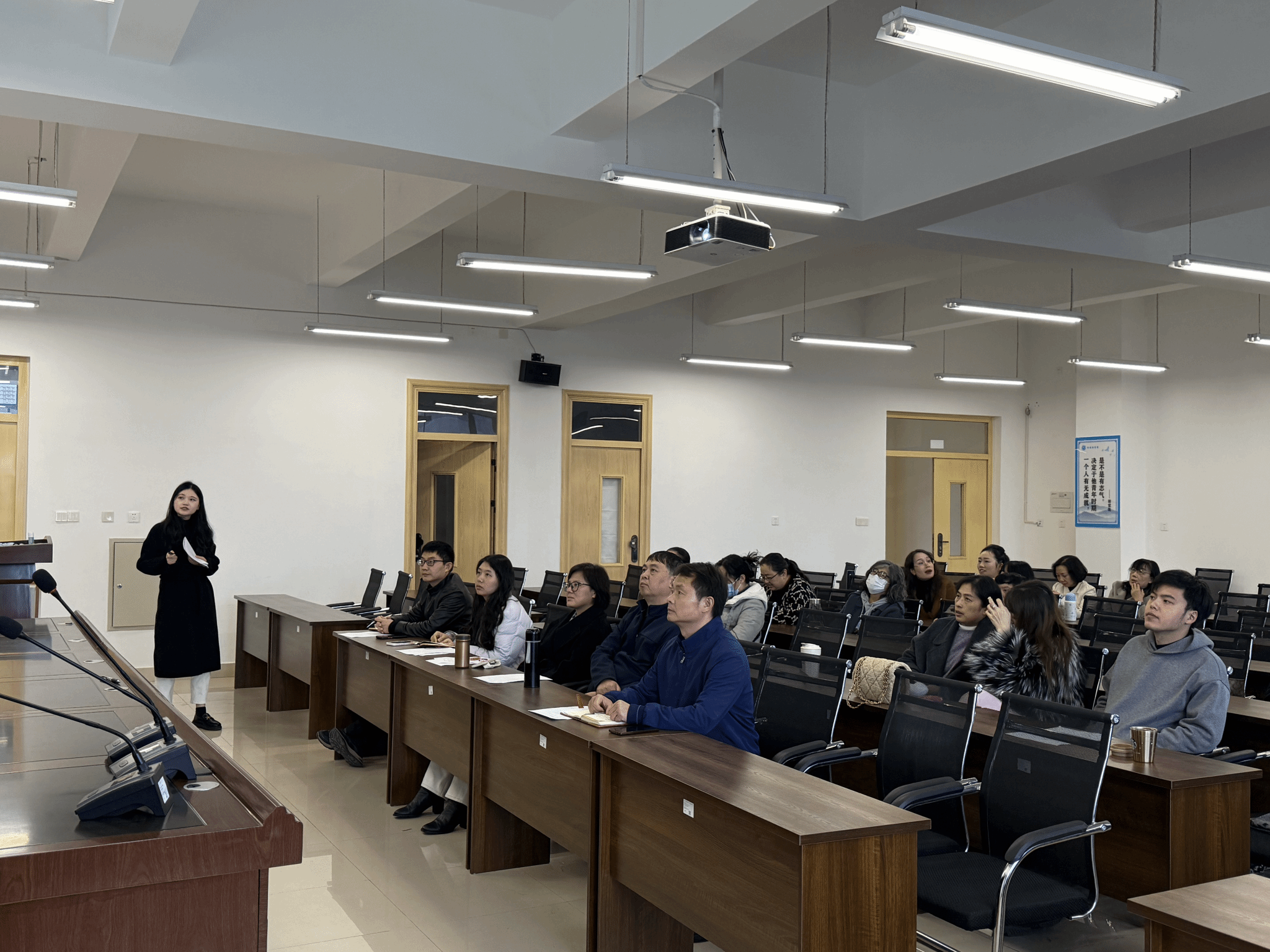 学院精心部署筹备工作,成立由党政领导、教学督导及教指委成员组成的评审委员会,科学制定评审细则,聚焦语言应用能力、跨文化交际素养及课程思政融入等核心要点,确保评审全程公平规范。通过多渠道宣传动员与一对一精准答疑,符合条件的青年教师实现全员参赛,覆盖英语、翻译、泰语及大学英语等多个教学领域,教龄结构兼顾新锐力量与骨干群体,尽显竞赛的广泛性与代表性。 竞赛现场,参赛教师以 “20 分钟无生上课” 同台竞技,课程涵盖专业核心课、选修课、公共基础课三大类别。老师们灵活运用多媒体、情境模拟等教学手段,将语言知识传授与综合素养培育深度融合,充分展现出扎实的专业功底与鲜明的教学风格。学院同步组织专任教师现场观摩互评,评委会当场打分点评,精准梳理共性问题、形成改进清单,构建起 “展示 - 点评 - 反思 - 提升” 的良性互动闭环。最终,邓萍、严婕、张莉 3 名青年教师脱颖而出,成功入围校级决赛。