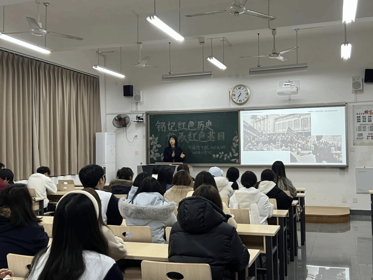 2025年12月7日,学校纪委副书记覃华艳在明德楼B118教室,为联系班级外25.3班全体学生作学习贯彻二十届四中全会精神主题宣讲,以师生共读《习近平的七年知青岁月》为切入点,引导学生深悟全会要义,为“十五五”蓝图落地注入青春动能。