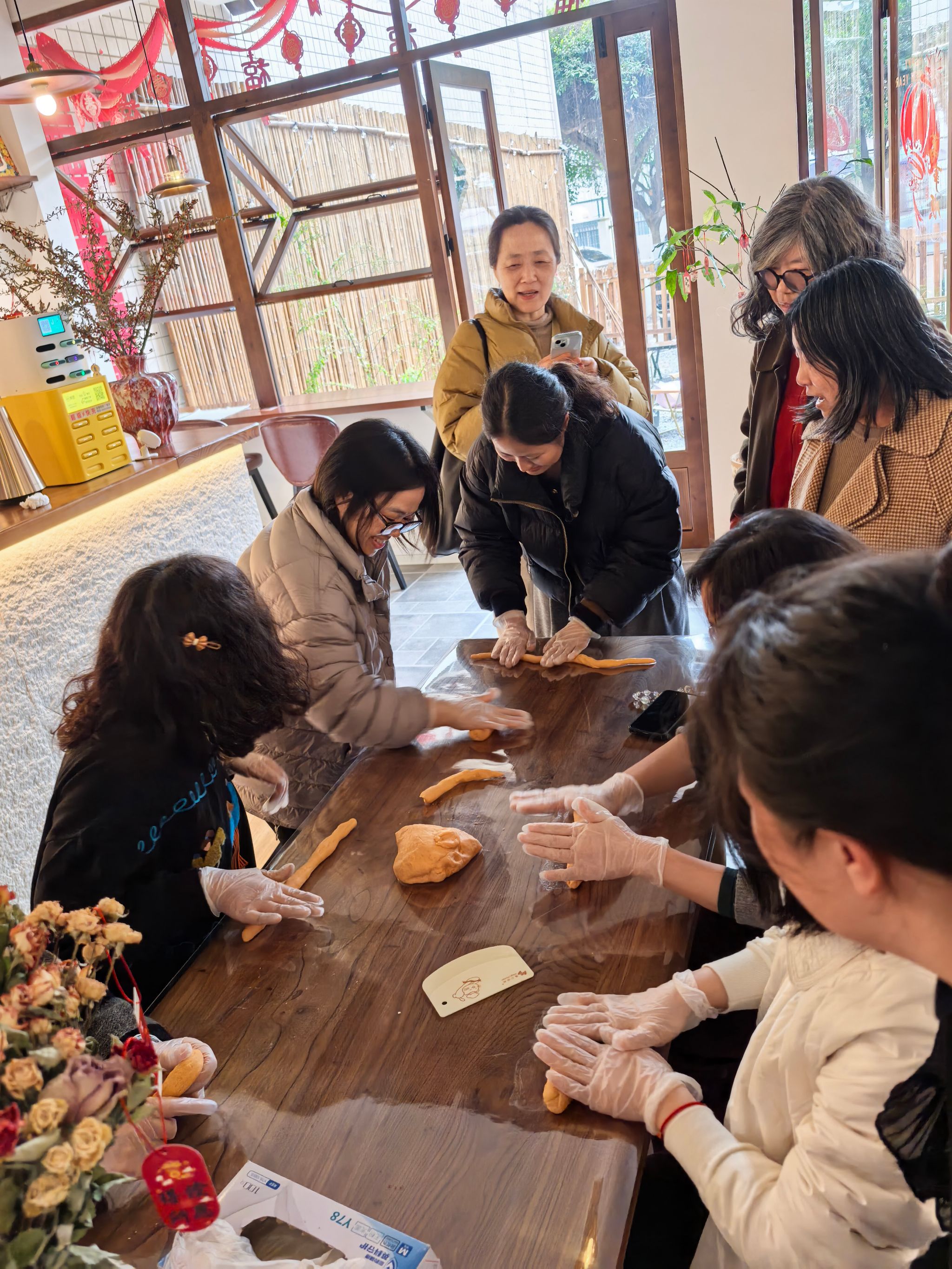 活动现场布置温馨雅致,食材、工具整齐摆放,香甜气息扑面而来。专业甜品师现场讲解并示范紫薯 / 红薯芋圆制作、煮制、搭配全流程,从食材配比、揉面搓条到煮制过凉、甜品组装,步骤清晰、讲解细致。老师们认真学习、相互协作,揉面团、搓芋圆、煮制加料,亲手做出 Q 弹爽滑的彩色芋圆,搭配椰奶、蜜豆、仙草等,完成一碗碗颜值与口感兼备的芋圆甜品。大家交流心得、分享成果,现场欢声笑语不断,洋溢着轻松愉悦的节日氛围。