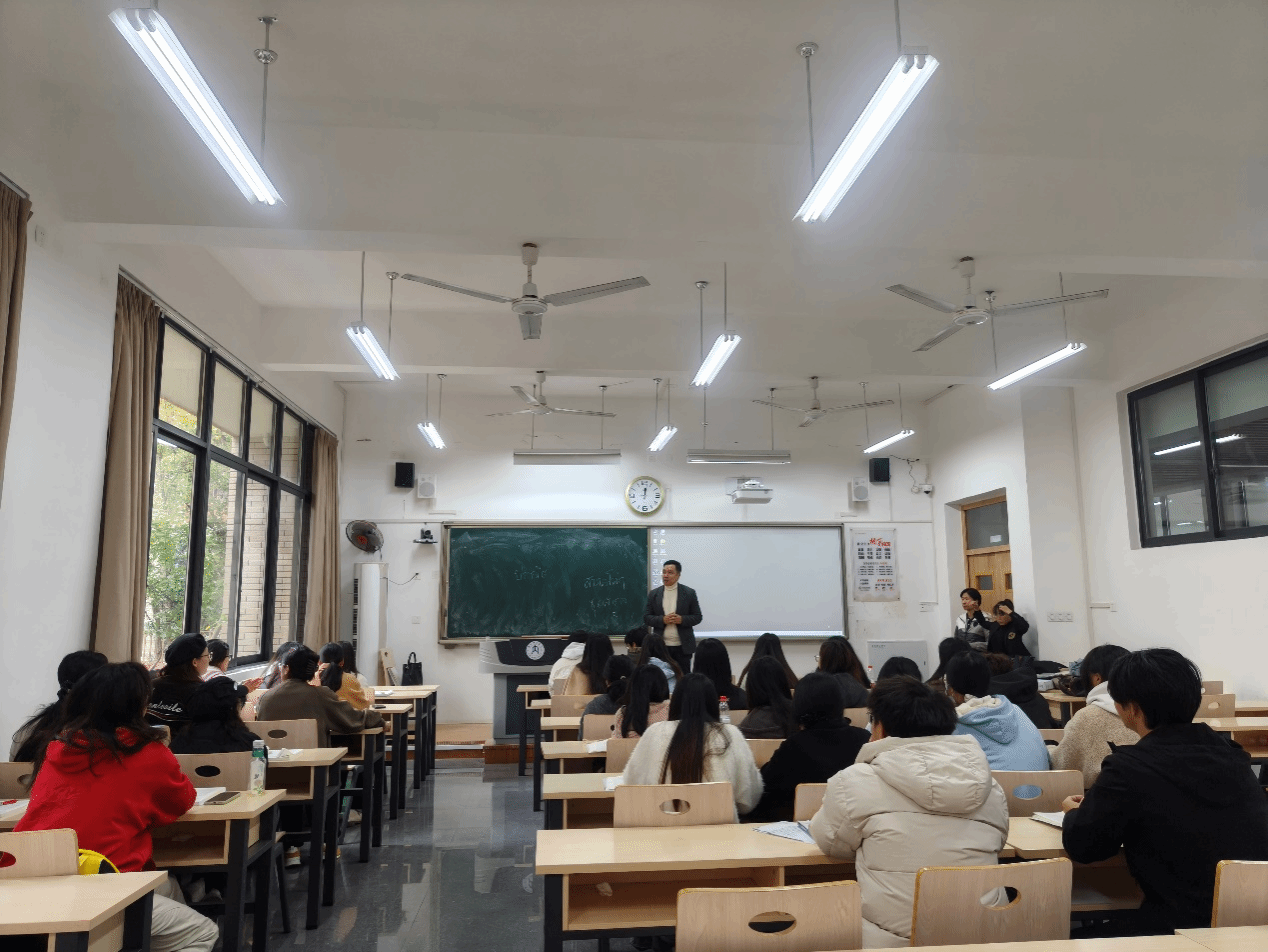 会后,Sakorn Ruanklai院长一行分别走进我院2023级和2024级泰语专业课堂当中,与学生座谈交流,详细介绍了清迈大学的基本情况、发展历程、办学规模及学习环境等。同学们纷纷表示,非常期待在大三期间赴泰国清迈大学进行交换学习。